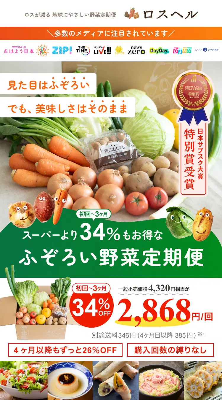 国が定めている農薬使用量、頻度、成分を下回る、残留農薬の心配がない規格外野菜(正規品含む)のみ取り扱いします。